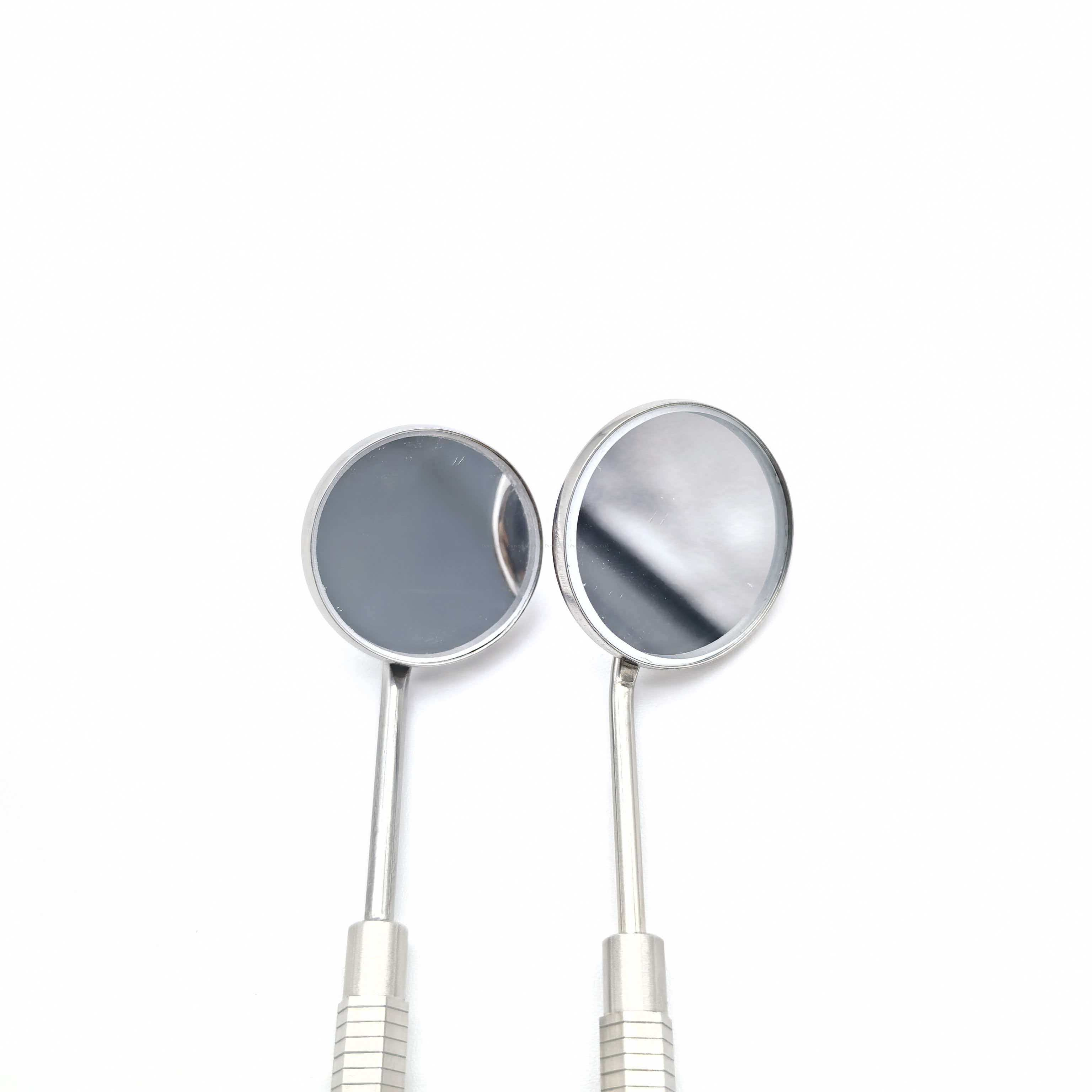 Este espelho bucal está disponível em tamanhos de espelho grandes e pequenos para se adequar a diferentes dimensões orais e cenários de exame, cobrindo perfeitamente tanto verificações abrangentes de adultos quanto operações pediátricas precisas.