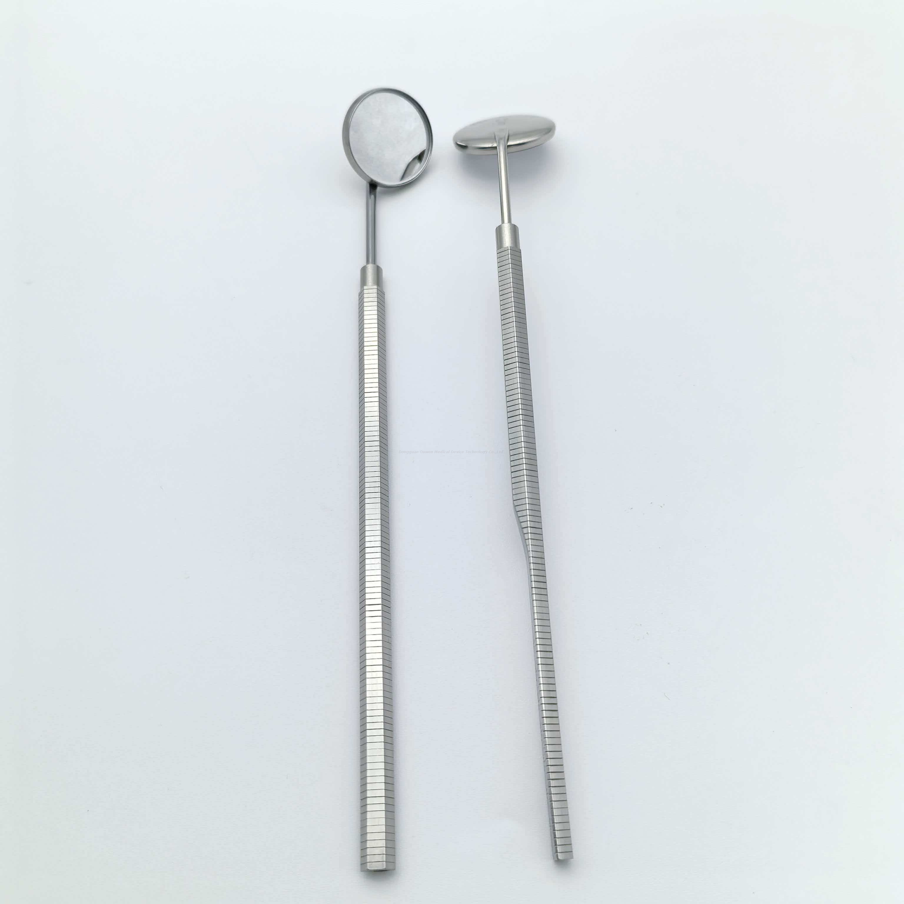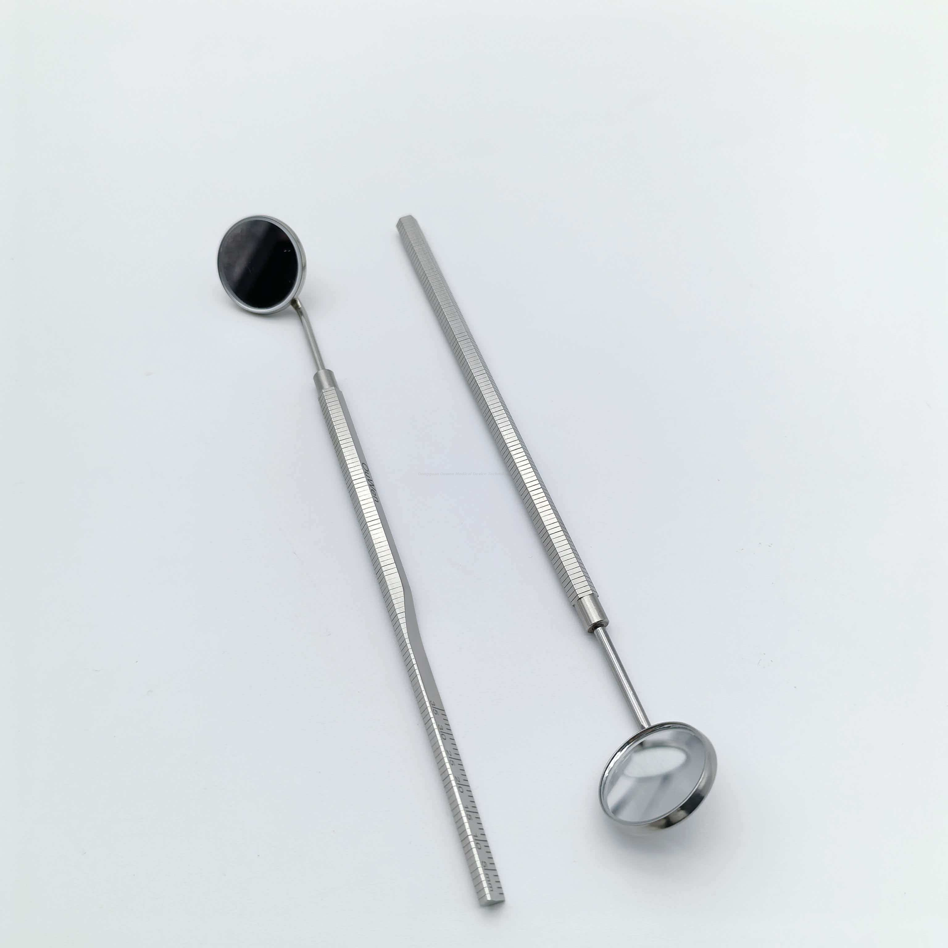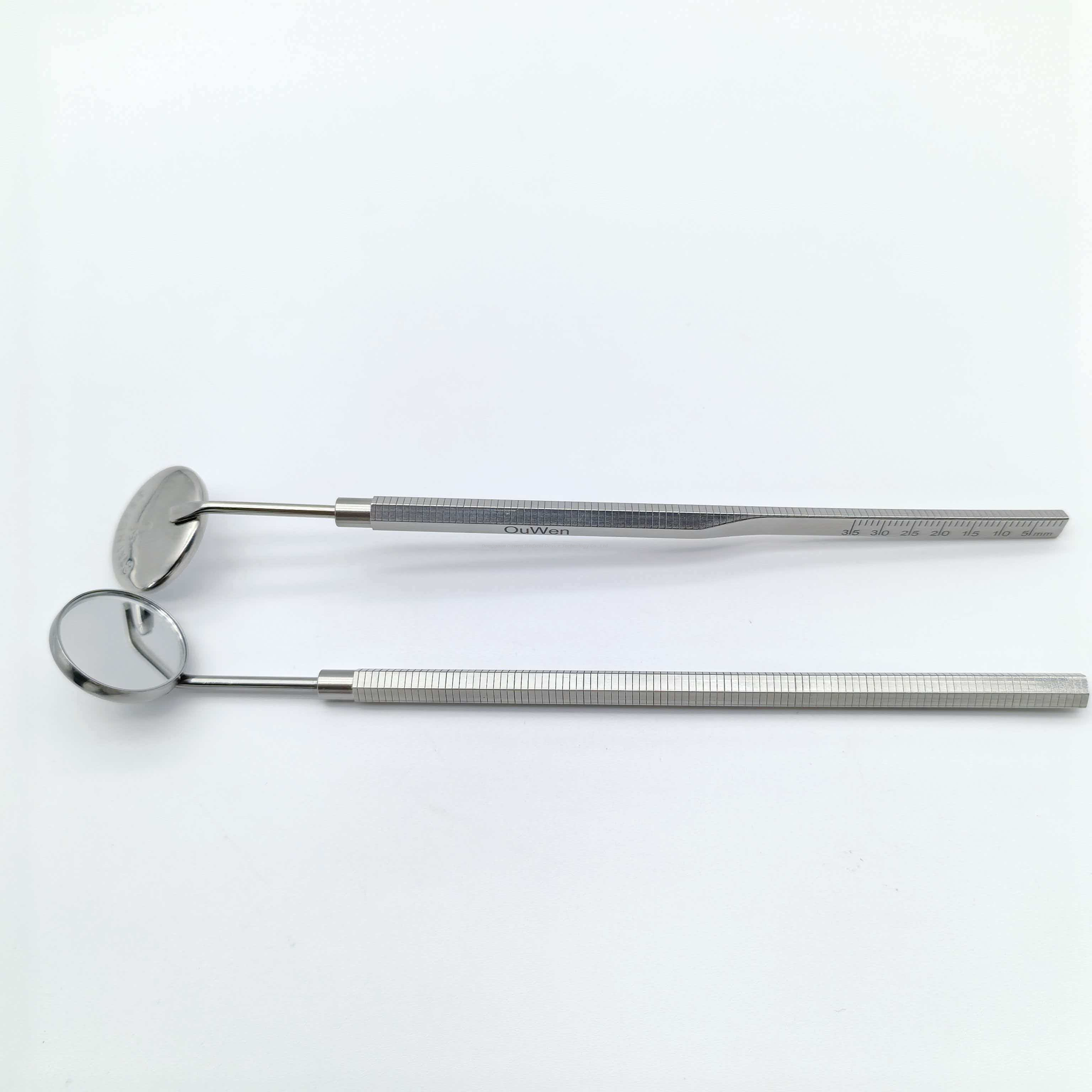A alça foi projetada com finas saliências antiderrapantes para uma pegada confortável e segura. Pode ser usado não apenas para observar lesões dentárias e gengivais, mas também para retrair suavemente os tecidos moles dos lábios e bochechas, ampliando o campo operatório.